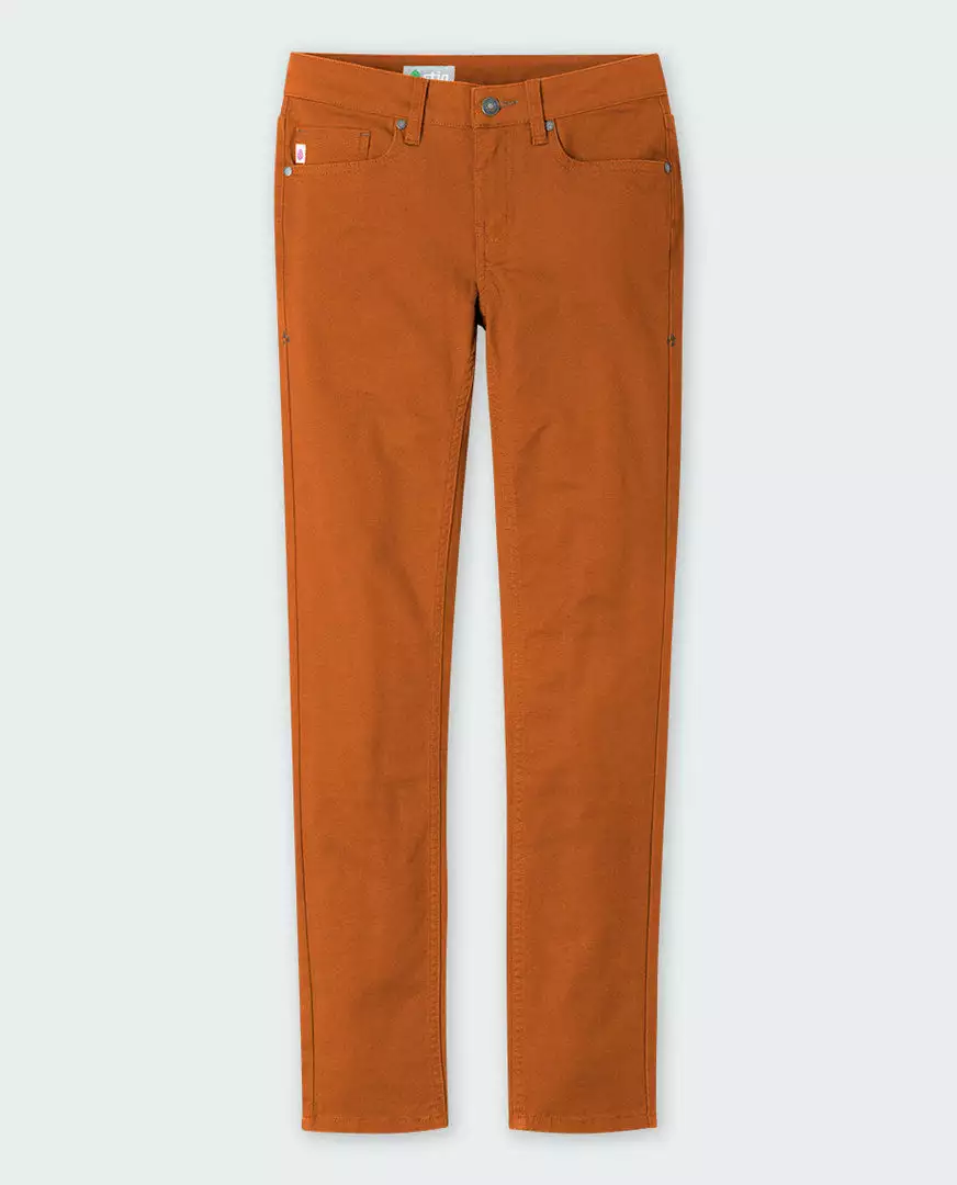 Durable organic cotton, with a hint of stretch, creates our modern mountain pant for road trips or dinner out.